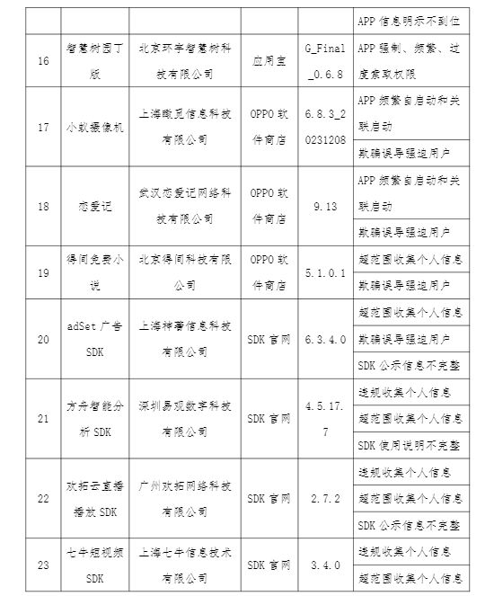 工业和信息化部表示,依据《个人信息保护法》《网络安全法》《电信条例》《电信和互联网用户个人信息保护规定》等法律法规,工业和信息化部持续开展APP侵害用户权益专项整治行动。相关APP及SDK应按有关规定进行整改,整改落实不到位的,将依法依规组织开展相关处置工作。